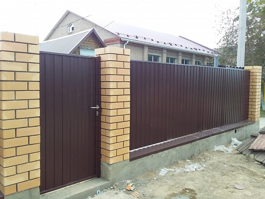 > Забор из профнастила с кирпичными столбами 15 соток