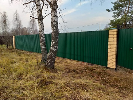 ЗАБОР ИЗ ПРОФНАСТИЛА С КИРПИЧНЫМИ СТОЛБАМИ 20 соток