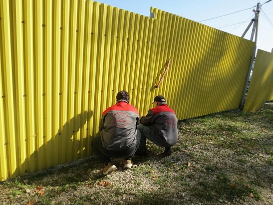 Забор из профнастила с утрамбовкой щебнем 122 метра