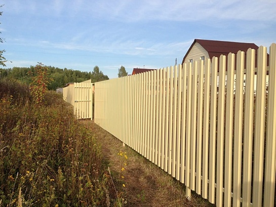 Забор из евроштакетника цвет бежевый